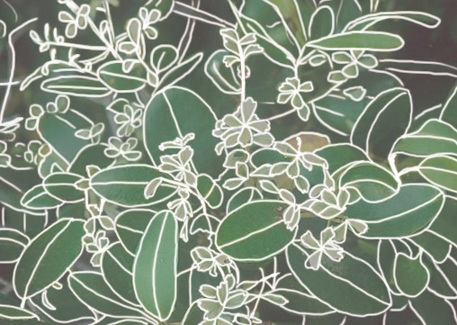 Fotografias com intervenções de contornos brancos que ressaltam a realidade ou o eu onírico do ambiente.